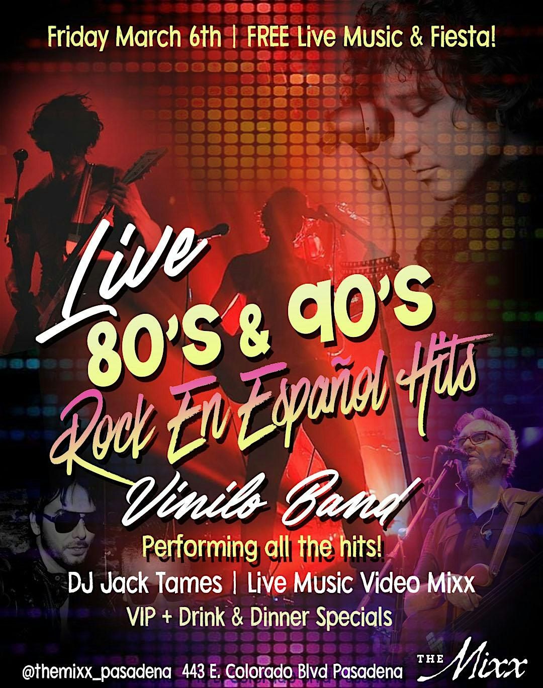 The ultimate LIVE 80's, 90's & Rock Pop en Español live show and dance party returns to Pasadena with a special ilve tribute show by VINILO Rock Band.