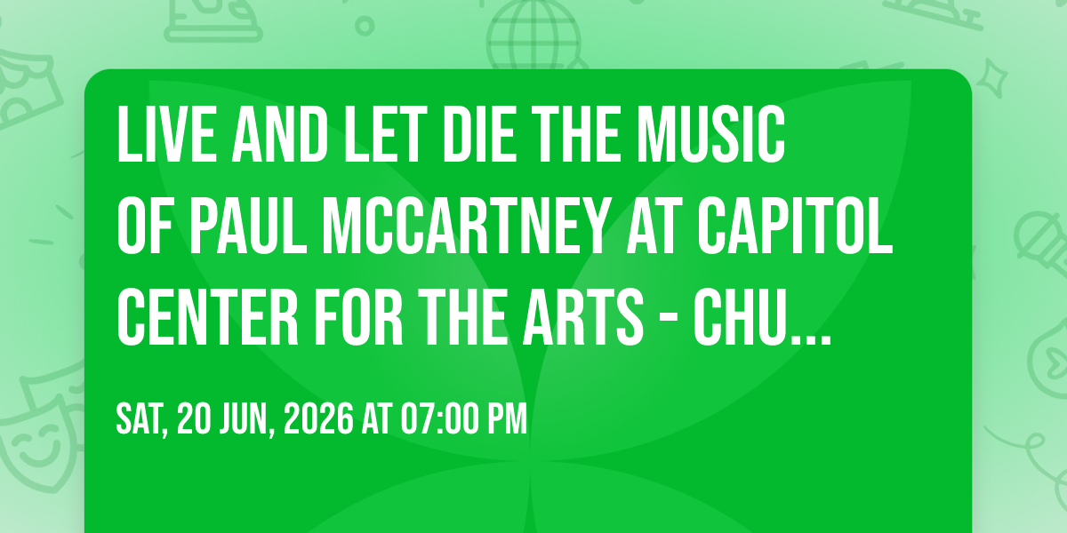 ✨ Enter a world of endless possibilities at Live and Let Die The Music of Paul McCartney at Capitol Center for the Arts - Chubb Theatre, where every moment tells a story! 🏛️ The stunning Capitol Center for the Arts - Chubb Theatre in vibrant Concord, NH transforms into a realm of wonder on June 20th, 2026 at 07:00 PM. 🌟 They have crafted an experience that goes beyond the ordinary, combining elements of surprise, delight, and pure entertainment. Every detail has been thoughtfully considered to ensure your journey with us is nothing short of extraordinary. 🎯 Join fellow adventure seekers and memory makers in this celebration of imagination and innovation. 🎊 Reserve your spot today and be part of something truly special!