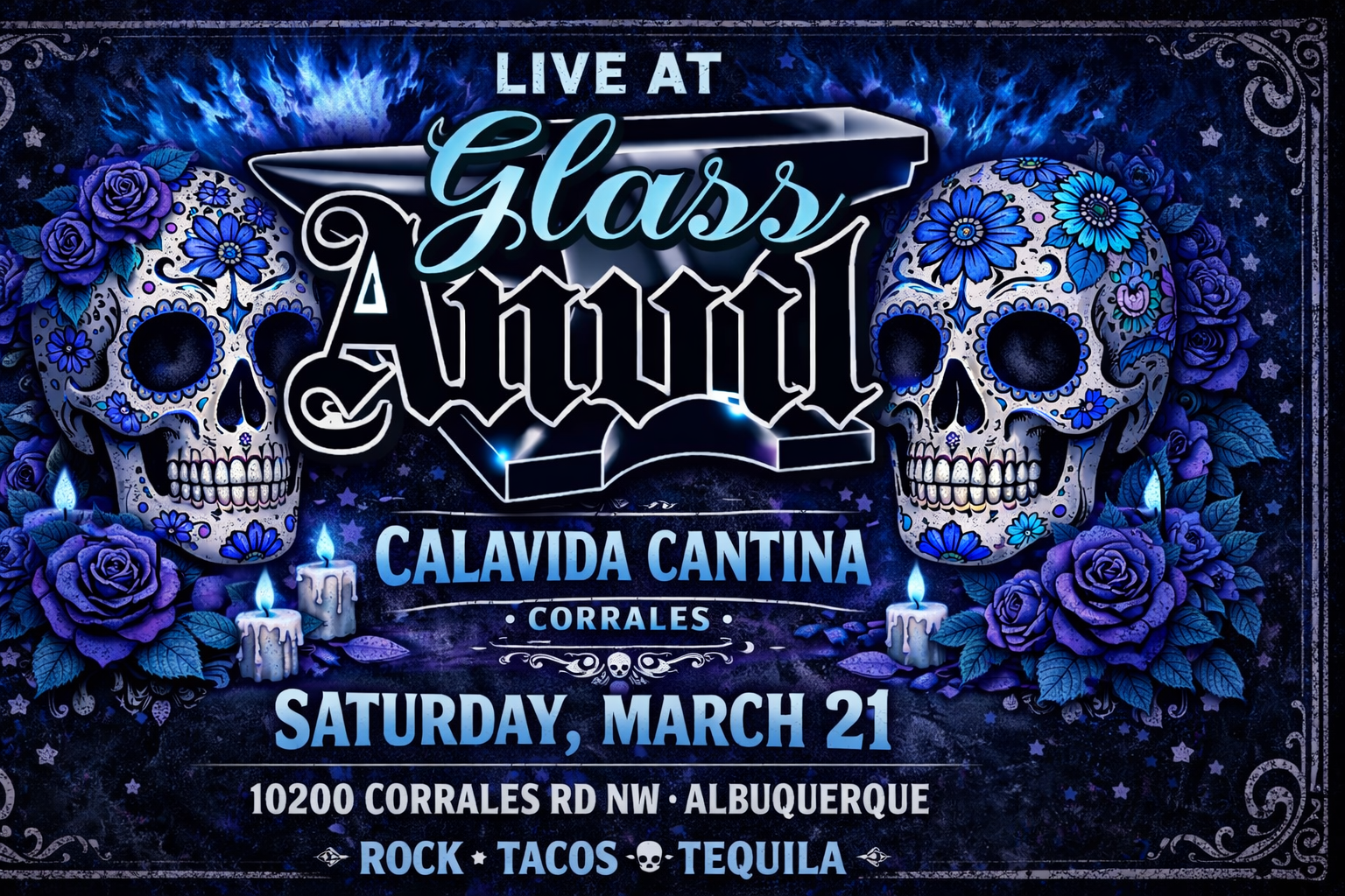 Experience a night of enchanting melodies and captivating performances at "Live at Glass Anvil"! Join us on March 21, 2026, at 7:00 PM at the vibrant Calavida Cantina, located at 10200 Corrales Rd NW, Albuquerque.