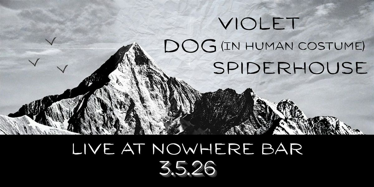 Violet (9 pm), Dog (In Human Costume) (10 pm), and Spiderhouse (11 pm) live at Nowhere Bar in Athens, GA.