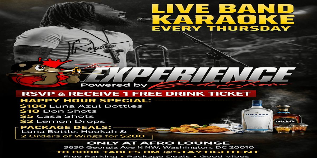 This isn’t your average karaoke night — this is LIVE BAND karaoke, powered by The Experience Band, one of the hottest bands in the DMV.