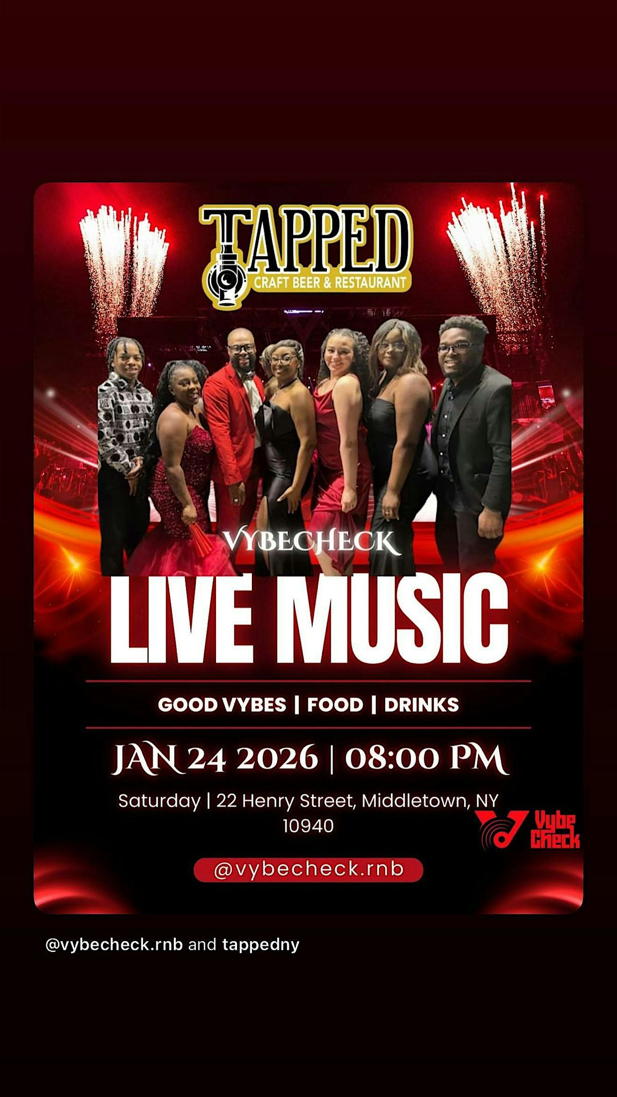 Come vibe with us at Tapped for a night of soulful R&B music! Vybecheck will be bringing the 🔥🔥🔥 with their top R&B hits and killer vocals. Get ready to turn up and sing along to all your favorite R&B hits. Don't miss out on this unforgettable evening of live music and good vybes. Grab your friends and make it a night to remember!