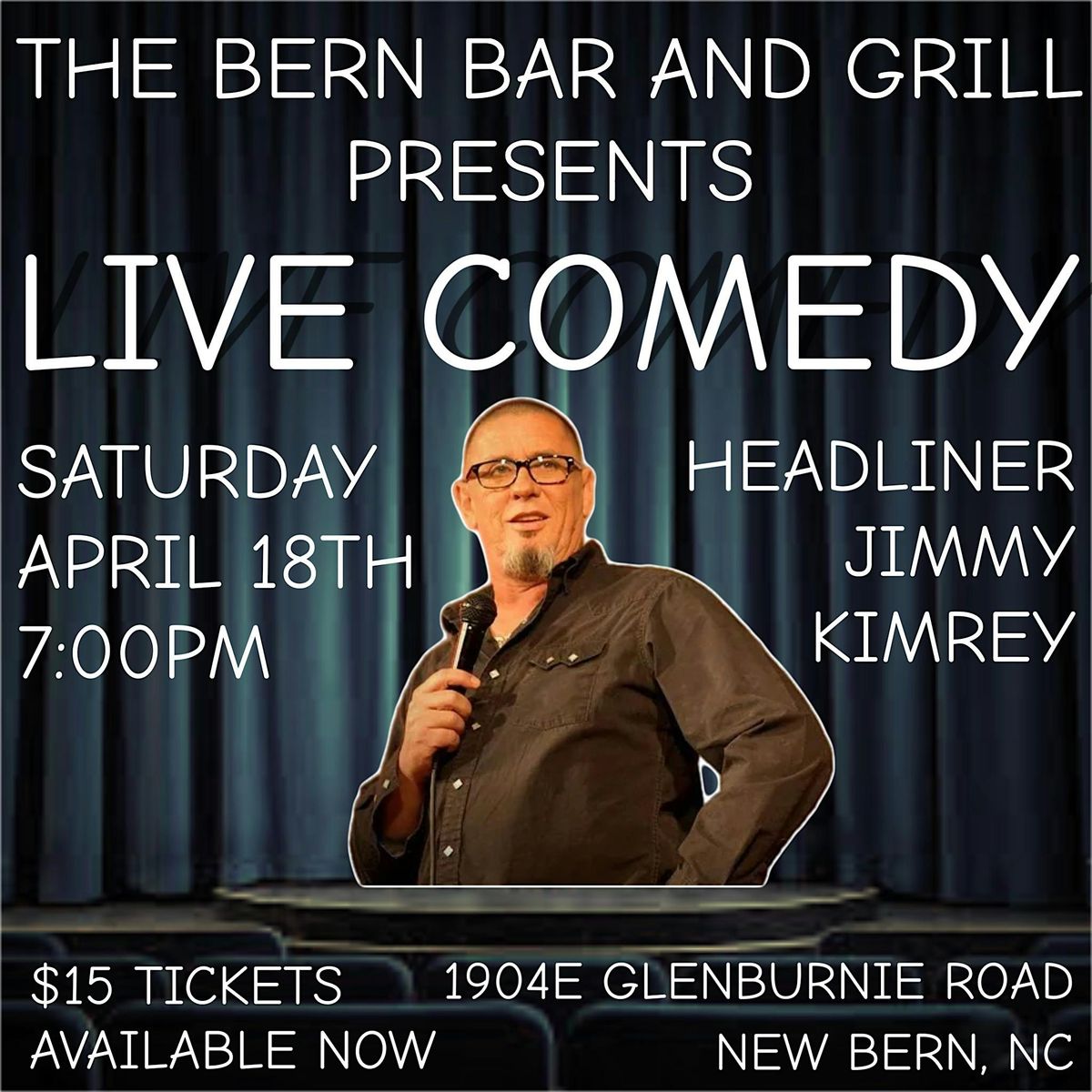 Welcome to LIVE COMEDY AT THE BERN! Get ready for a night of laughs at The Bern Bar and Grill. Join us on SATURDAY, APRIL 18TH at 7:00 PM (Eastern Time) for a hilarious comedy show that will have you rolling in your seat.