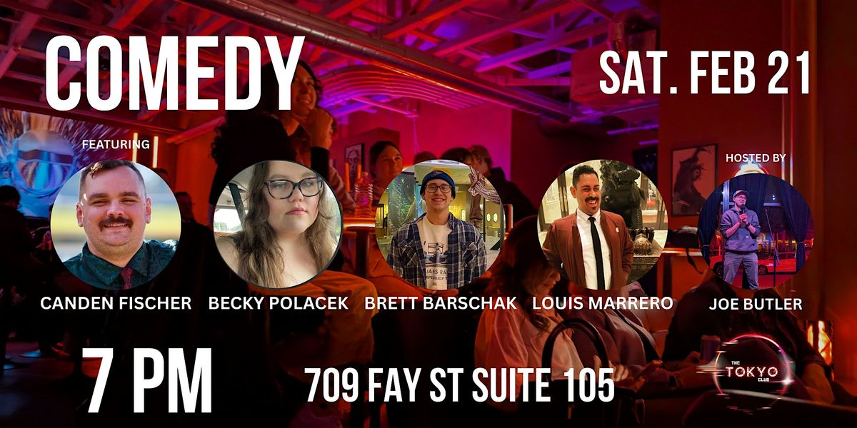 This showcase features Canden Fischer, Becky Polacek, Brett Barschak, and Louis Marrero, each bringing their own style and perspective to the stage. Hosting the night is Joe Butler, keeping the show tight, fun, and moving from start to finish.