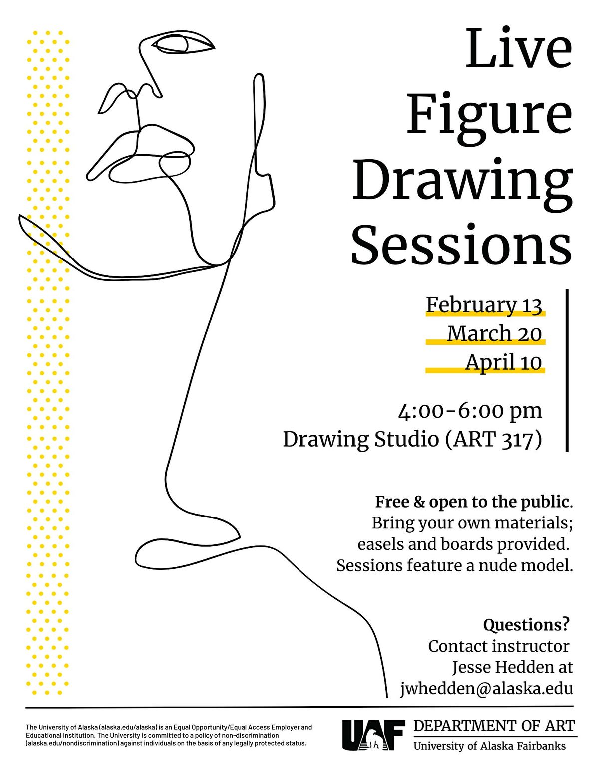 Join us for an evening of figure drawing in the studio. These sessions are free and open to the public.