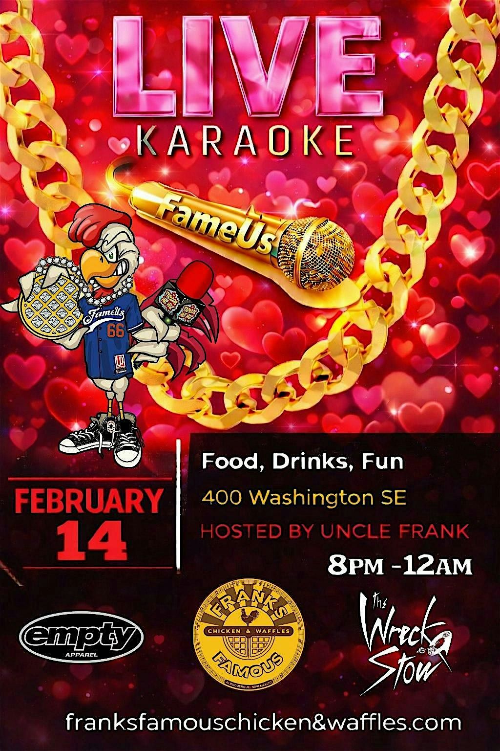 Live @ Franks Valentine Karaoke come sip & sing to your favorite song with food and drinks at Frank’s Famous Chicken & Waffles restaurant
