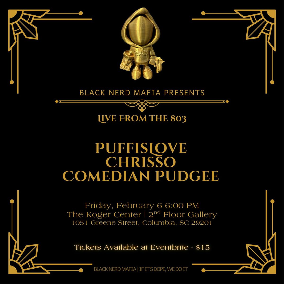 Live From the 803 is a monthly art series dedicated to highlighting the creativity and culture of South Carolina’s independent artists. Each event features an exciting mix of live music, spoken word, visual art, and performance, offering a platform for both emerging and established talent to share their voices with the community.