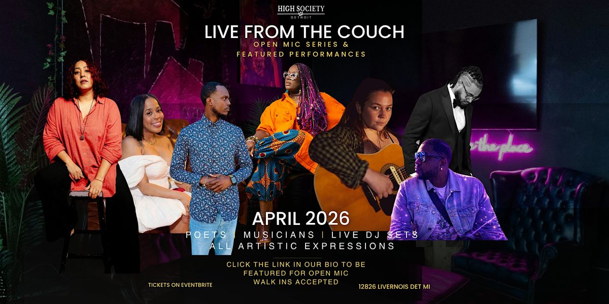 Live from the Couch returns this April at High Society Detroit, bringing you a curated series of live performances every Thursday night. Hosted by Etta Fly, this weekly experience blends music, poetry, and storytelling in an intimate, soulful setting designed for Detroit’s creative community.