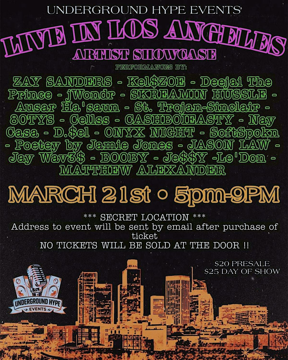 Get ready to vibe and jam at LIVE IN LOS ANGELES – the hottest in-person event you can't miss!About this Event