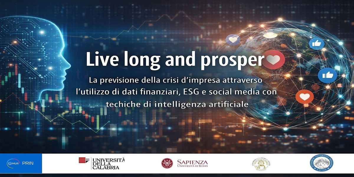 Il convegno presenta i risultati del Progetto PRIN 2022 – “Live long and prosper”, un’iniziativa di ricerca che esplora come l’integrazione di dati finanziari, indicatori di misconduct manageriale variabili ESG e informazioni provenienti dai social media possa migliorare significativamente la capacità di anticipare le crisi aziendali attraverso tecniche avanzate di Intelligenza Artificiale e machine learning.