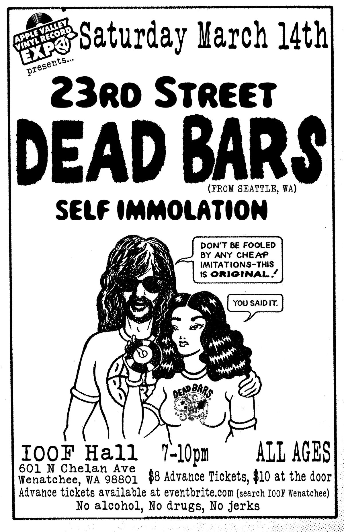 Live music (all ages welcome) featuring: 23rd Street, Dead Bars (from Seattle and Self Immolation. Saturday March 14th at the IOOF Hall.About this Event