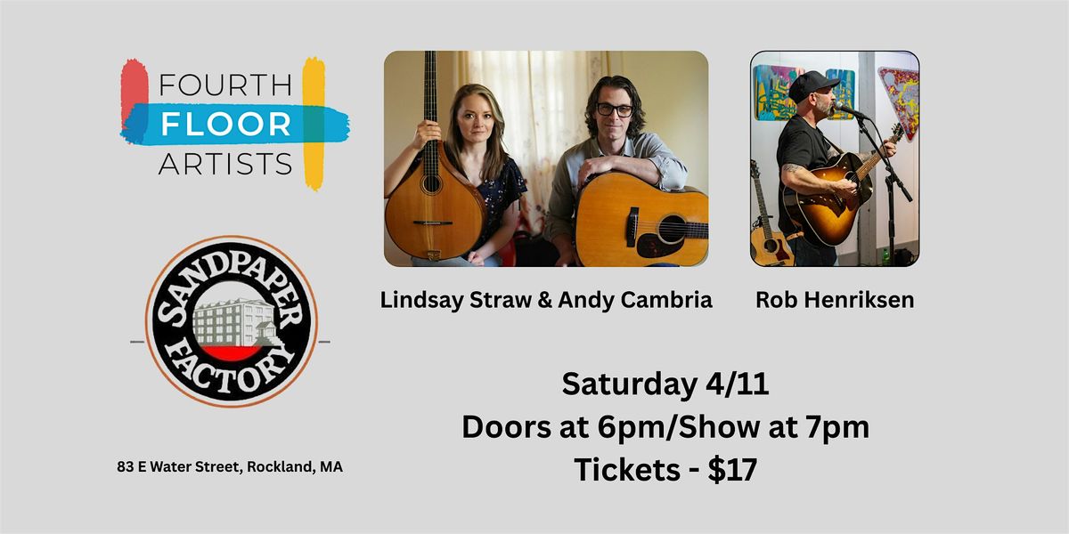 Join us for an intimate evening of live music and art in one of Rockland’s most creative spaces. This month we have Lindsay Straw and Andy Cambria and our host Rob Henriksen. Doors at 6pm |Show at 7pm