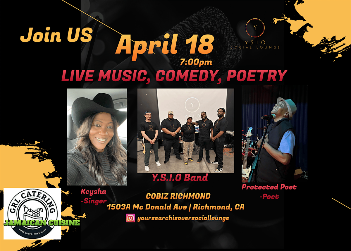 Join us at Y.S.I.O Social Lounge for an unforgettable evening of live music, comedy, poetry, and great food all under one roof.