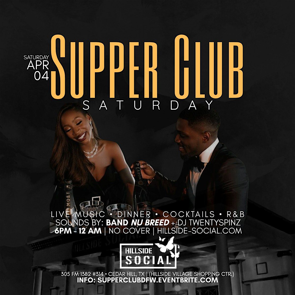 Step into an evening of pure ambiance as Hillside Social hosts “SUPER CLUB SATURDAY” — where smooth soulful sounds, stylish energy, and beautiful company come together under the glow of night lights.