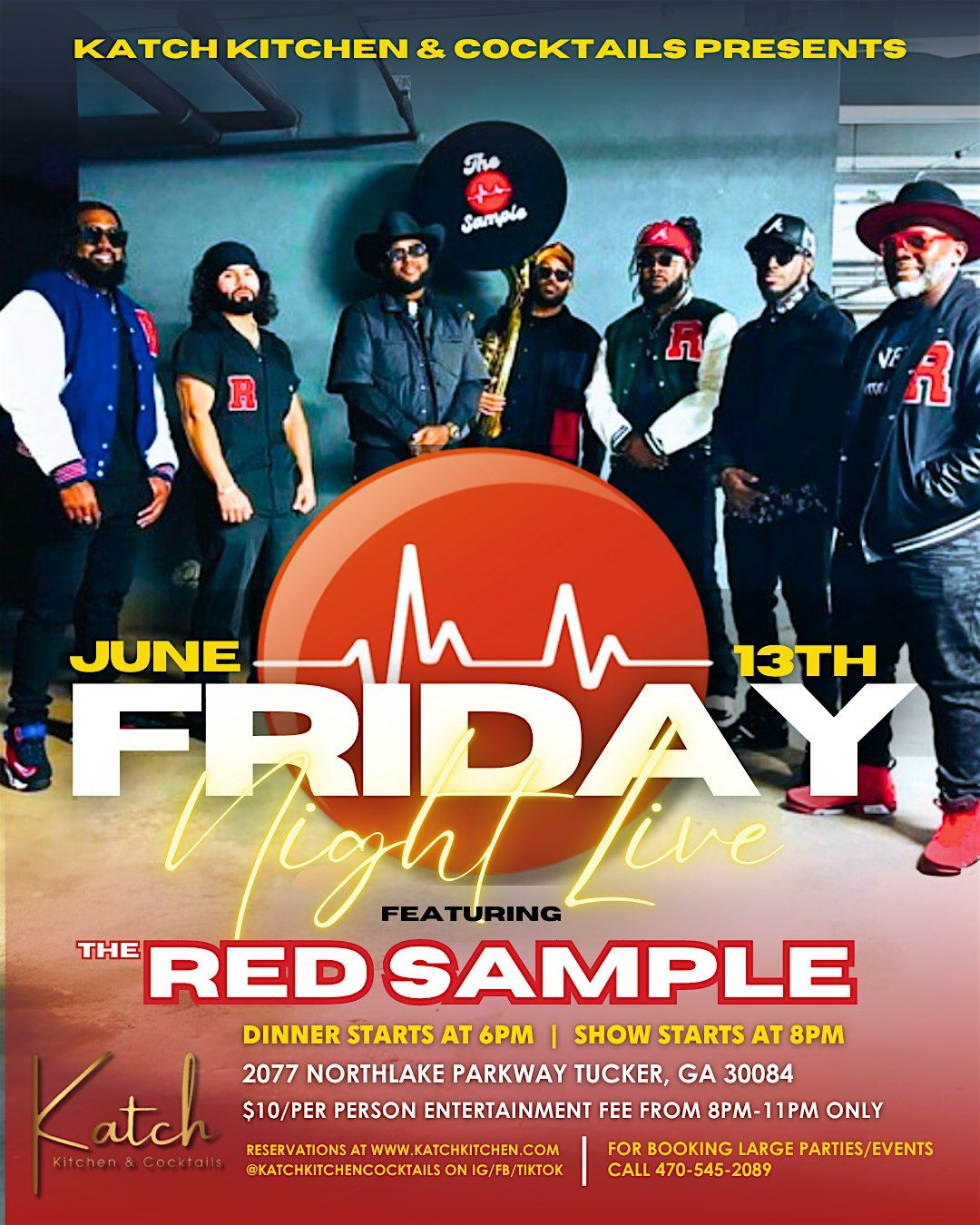 We’re turning the volume up on Friday night! Join us Friday, April 10th at Katch Kitchen & Cocktails for a hip and high-energy night of live music with The Red Sample (@theredsample)!
