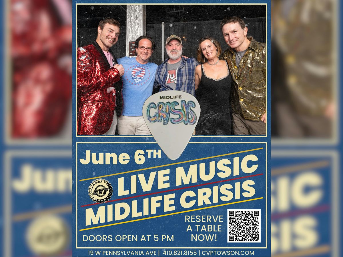 Welcome to Live Music: Midlife Crisis! Join us at Charles Village Pub, Patio & Rooftop for a night filled with great tunes and good vibes. Get ready to dance, sing along, and have a blast with our talented musicians. The event will be held in person, so come on down and enjoy the live music experience with friends and fellow music lovers. Don't miss out on this opportunity to unwind, relax, and groove to some awesome tunes. See you there!