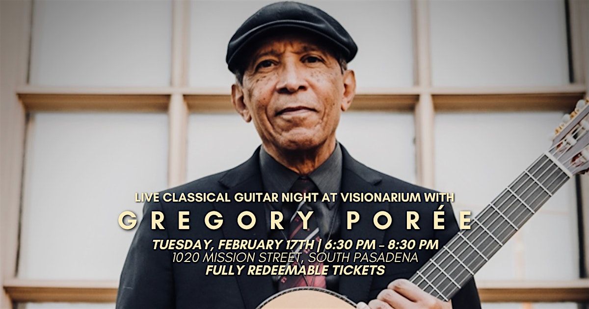 Gregory Porée returns to Visionarium with a unique and captivating performance. His music blends classical guitar repertoire with iconic covers by artists like Stevie Wonder, Leonard Cohen, Paul McCartney, and Richard Rodgers — alongside his own original compositions.