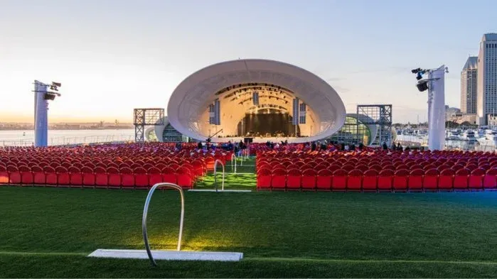 When Jacobs Park is open as a public park, the public is welcome to come into The Rady Shell and enjoy the lawns and seating areas of the venue. This often will include times when the San Diego Symphony is holding rehearsals. For certain rehearsals, however, The Rady Shell will be in "concert" mode and will therefore be closed to the public. Even at these times, though, the perimeter around The Rady Shell will remain open for public access during the open hours of the Park. Jacobs Park and Embarcadero Marina Park South are open to the public every day from 6am to 10:30pm. (Note: dogs are never allowed on the artificial turf areas of Jacobs Park, per our agreement with the Port of San Diego.)