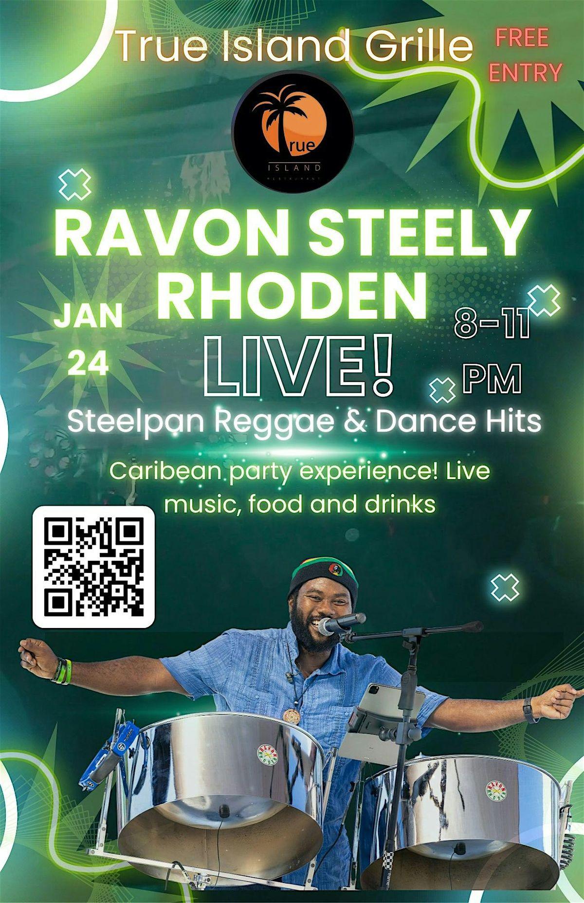 Caribbean party expereince brought to you by Ravon Steely Rhoden and True Island Grille. Live music, food and drinks all night! Free Entry, Free Parking. Show time 8- 11pm