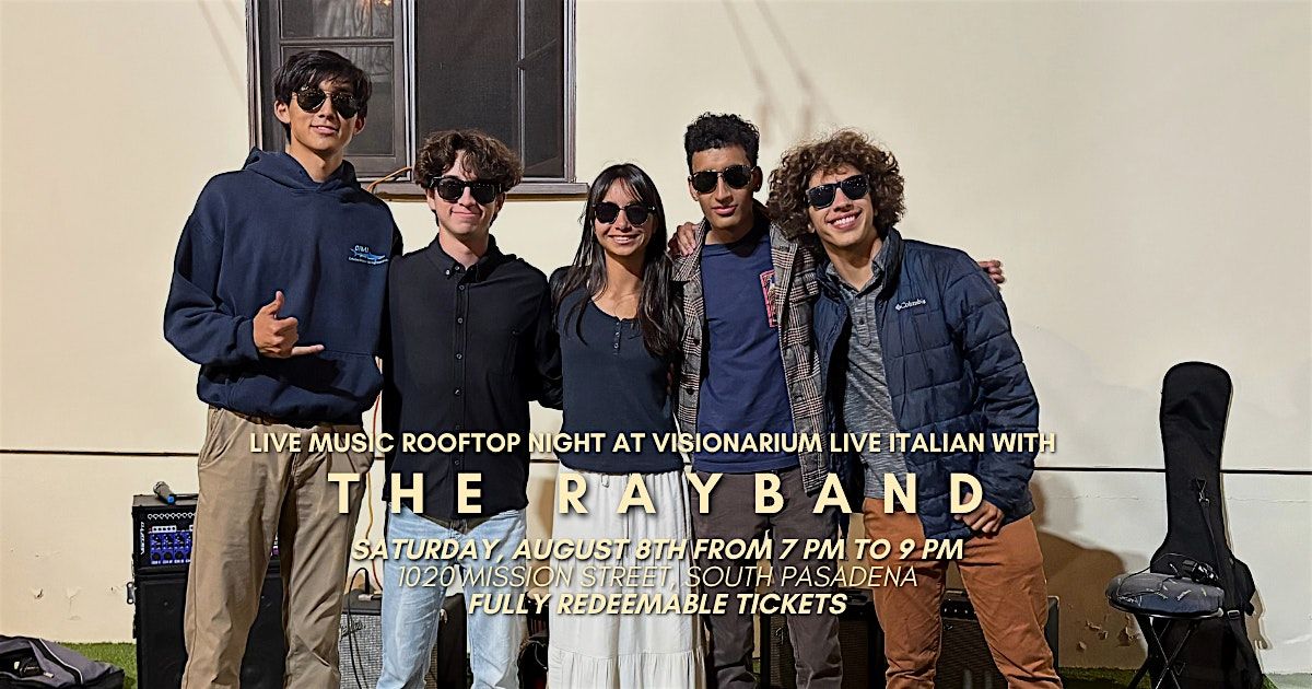 On Saturday, August 8th from 7 PM to 9 PM, the rooftop of Visionarium Live Italian in South Pasadena will come alive once again with The Rayband, returning after their huge success from their last unforgettable show 🎸🌙