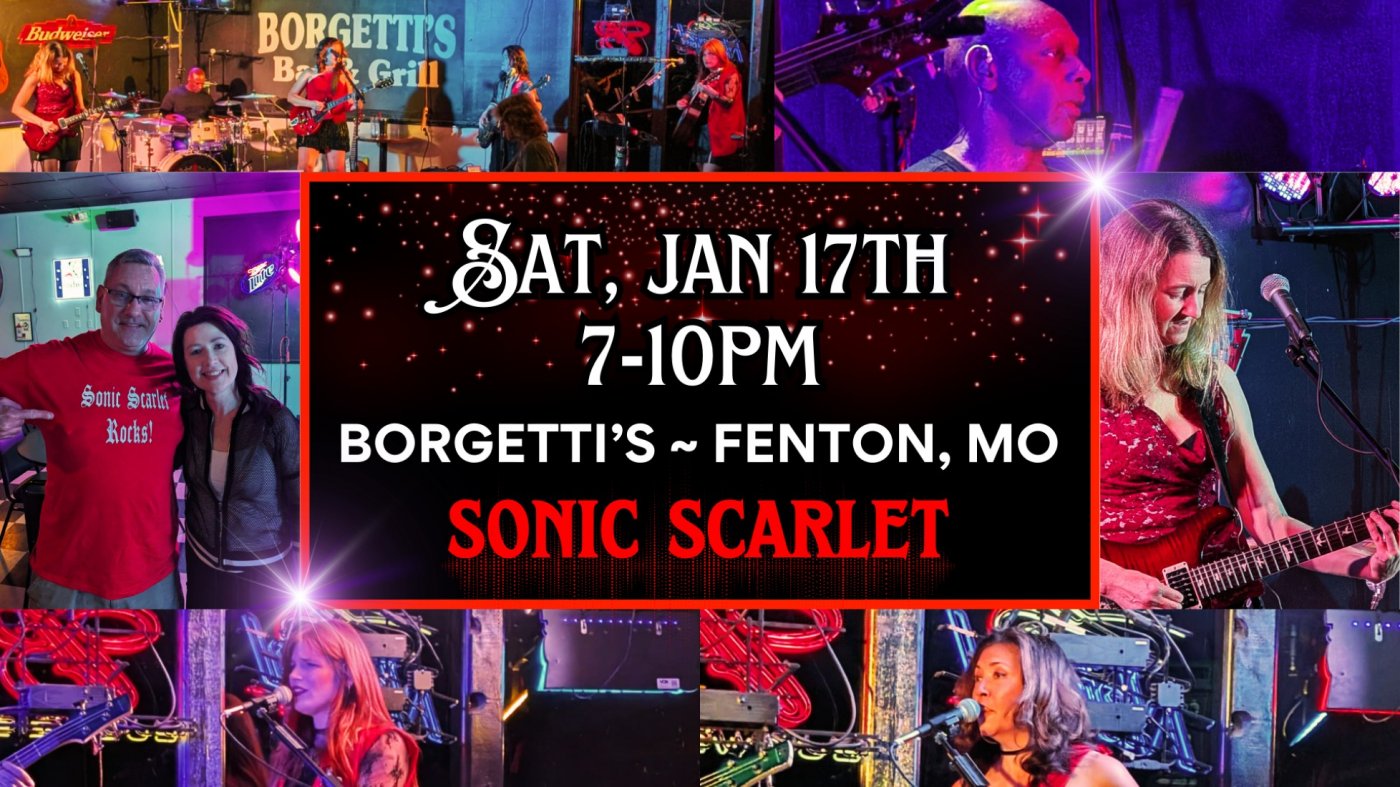 LIVE MUSIC, NO COVER! Sonic Scarlet is excited to make their return to Borgetti's in Fenton, MO, conveniently located on 141 near Hwy 30.