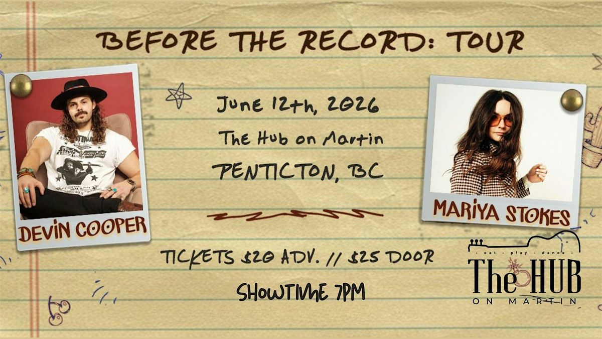 Join award-winning country artists Devin Cooper and Mariya Stokes for a special acoustic evening of live music on Friday June 12th at The Hub on Martin in Penticton, BC. On their Before the Record Western Canadian tour, they’re sharing fan favourites and debuting brand new songs live before their next albums are released.