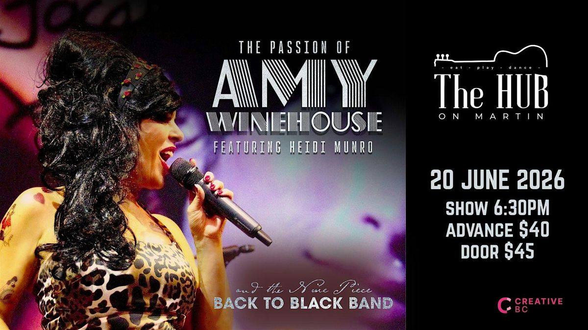 The music, energy and optic of this performance will ignite a love and nostalgia for the songs of the incredible Amy Winehouse. Capturing the essence of Amy, with trademark vocals and passionate stage performance is highly acclaimed Canadian vocalist, Heidi Munro. The Passion of Amy Winehouse is performed with a stellar A-list of musicians widely known across Canada.