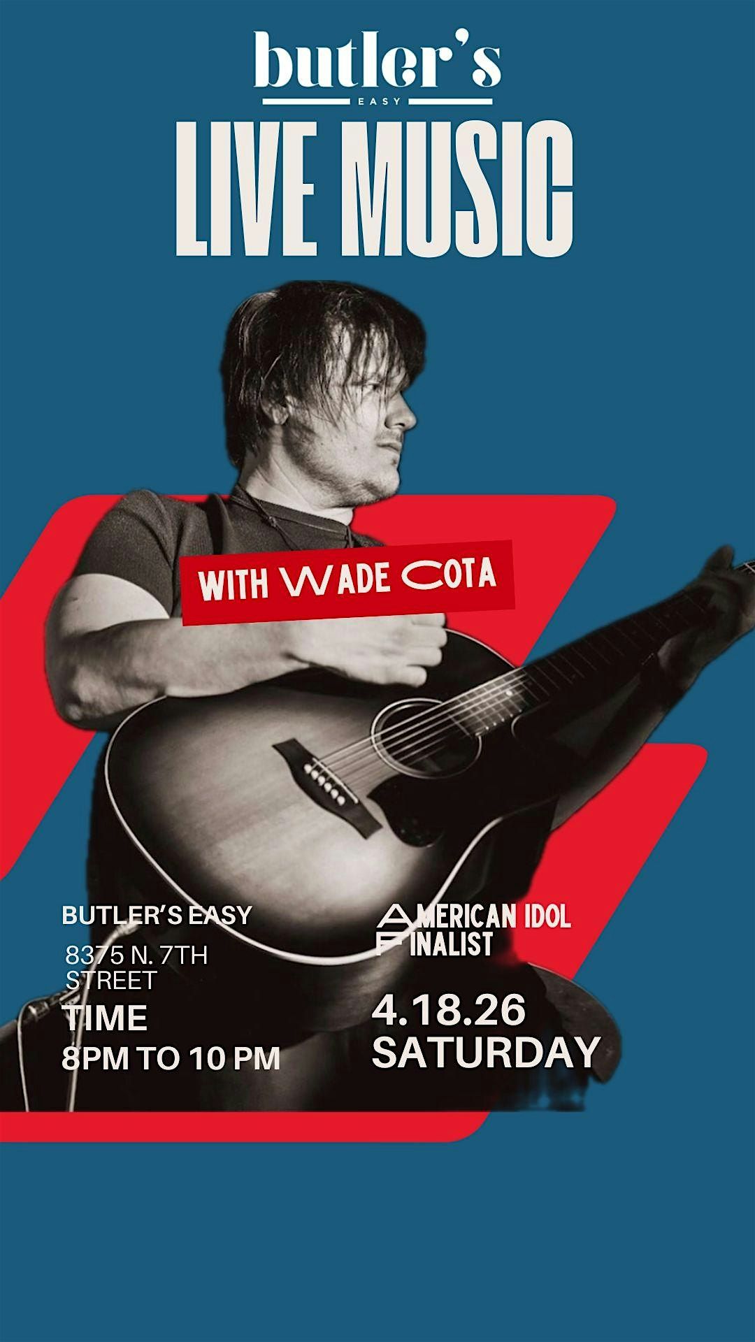 Join us at Butler's Easy on April 18th, 2026 at 8:00 PM (MST) for an unforgettable night! Wade Cota, the talented American Idol finalist, will be rocking the stage with live tunes. It’s the perfect chance to kick back, enjoy great vibes, and experience some amazing music in person. Grab a cocktail and make a song request. Don’t miss out on this fun evening with an awesome live performance! Trust us, you don't want to miss this.