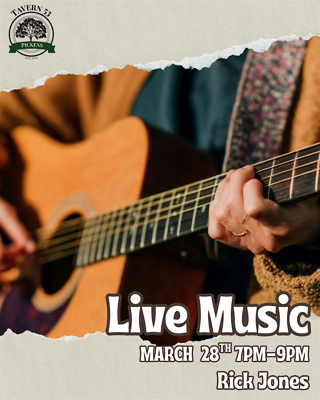 Join us for an unforgettable night of live music with the amazing Rick Jones! Come hang out in person at Tavern 53 and enjoy some great tunes, good vibes, and a fun atmosphere. Bring your friends and get ready to have a blast!