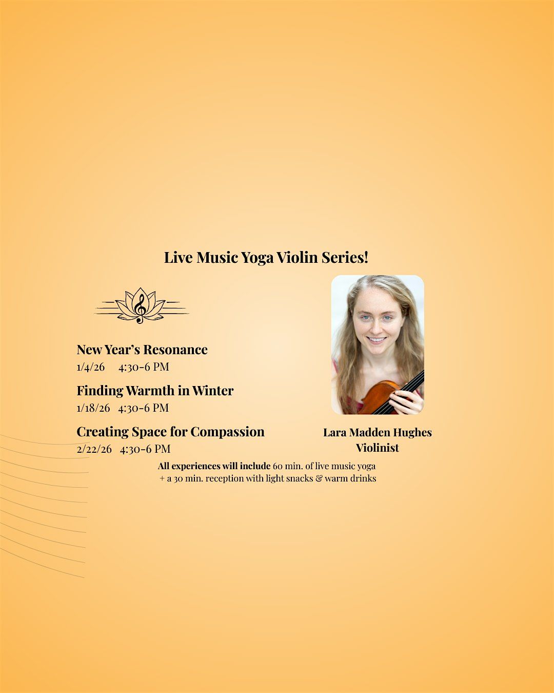 You will immerse in a sensory experience, connecting movement to the beautiful classical music of the violin, performed by Lara Madden Hughes. Yoga will be slow flow vinyasa, guided by Caroline Riley (RYT 200). Join us for a reception after the event, with light bites, warm drinks, and friendly conversation. The venue is accessible by public transit (North/Clybourn Red Line stop + multiple bus routes). Parking is available on the street (first come, first serve), with metered parking and parking garages also nearby.