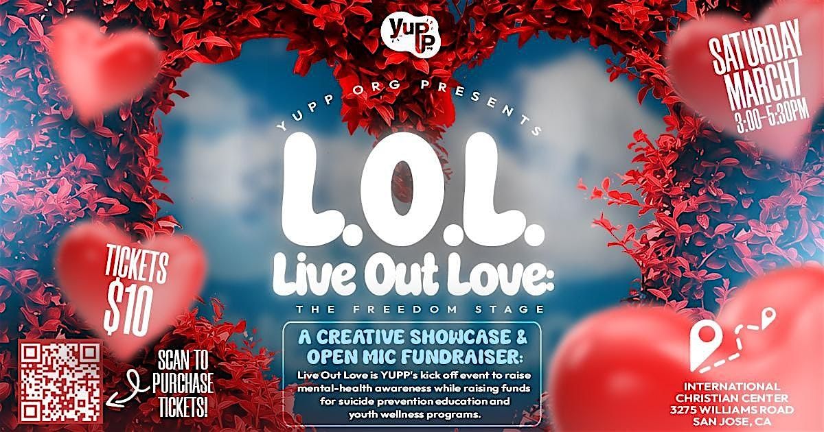 Live Out Love:The Freedom Stage is a creative showcase and open mic fundraiser featuring music, spoken word, dance, storytelling, and live performances from youth and local artists of all ages. Attendees are invited to sign up on site to perform alongside special guest performers in a safe, uplifting, and family-friendly space centered on hope, resilience, and healing. This kickoff event launches YUPP’s Live Out Love mental-health awareness series while raising funds for suicide-prevention education and youth wellness programs.