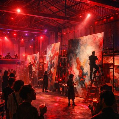 A live mural jam with music, open bar, and a rare chance to paint alongside 6 working muralists inside an active industrial studio.