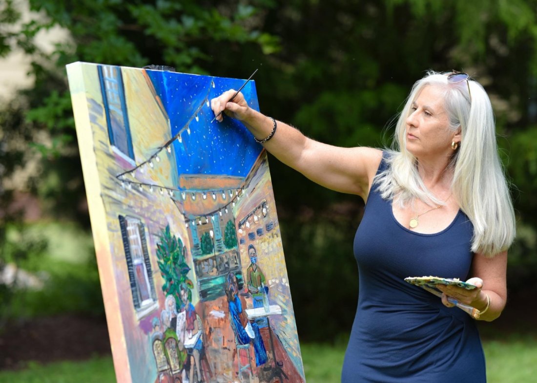 To celebrate the exhibition she invites lovers of art and Georgetown to a free VIP Live Painting and Meet the Artist event on September 23rd "Art All Night Georgetown. The exhibition includes paintings of Call Your Mother Deli The PNC Building and Martin's Tavern.