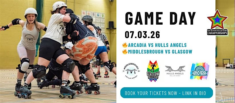 💥 Game 1: Arcadia vs Hull’s Angels Roller Derby (First whistle 11am)