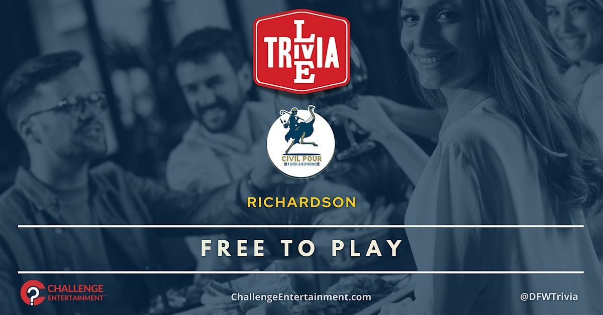 #CivilPourRichardson #TriviaInTX #TriviaInDFW #TriviaNearMe #ThursdayTrivia