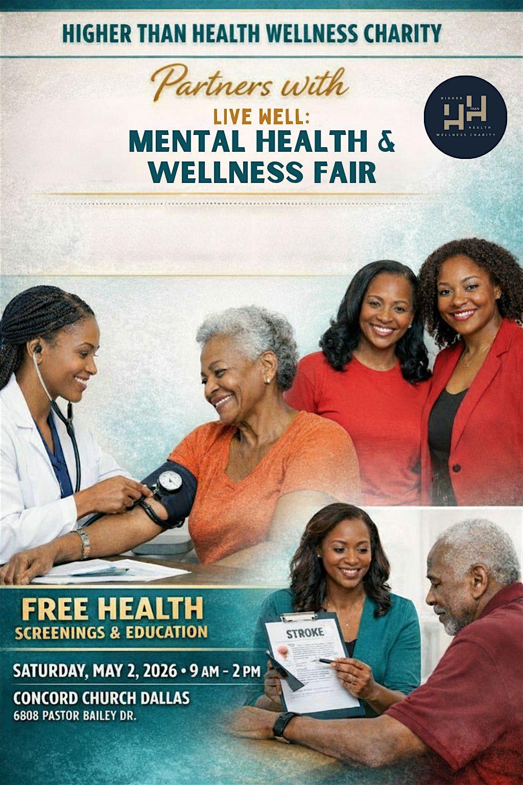 Join Higher Than Health Wellness Charity at the Live Well community event for blood pressure screenings, stroke education, and more!