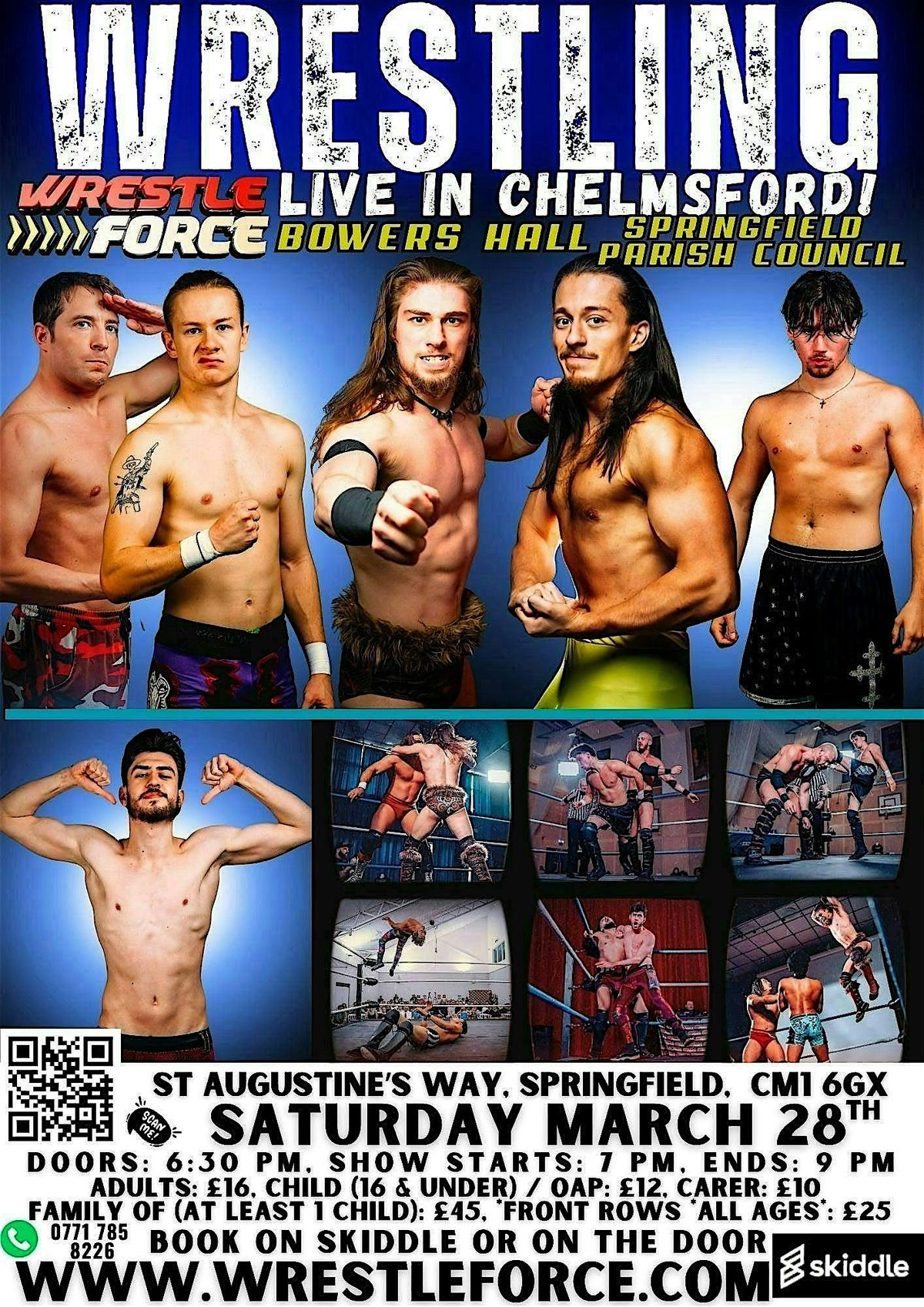 Wrestleforce comes to Bowers Hall in Springfield,Chelmsford on 28th March for a two hour extravaganza of live professional wrestling!