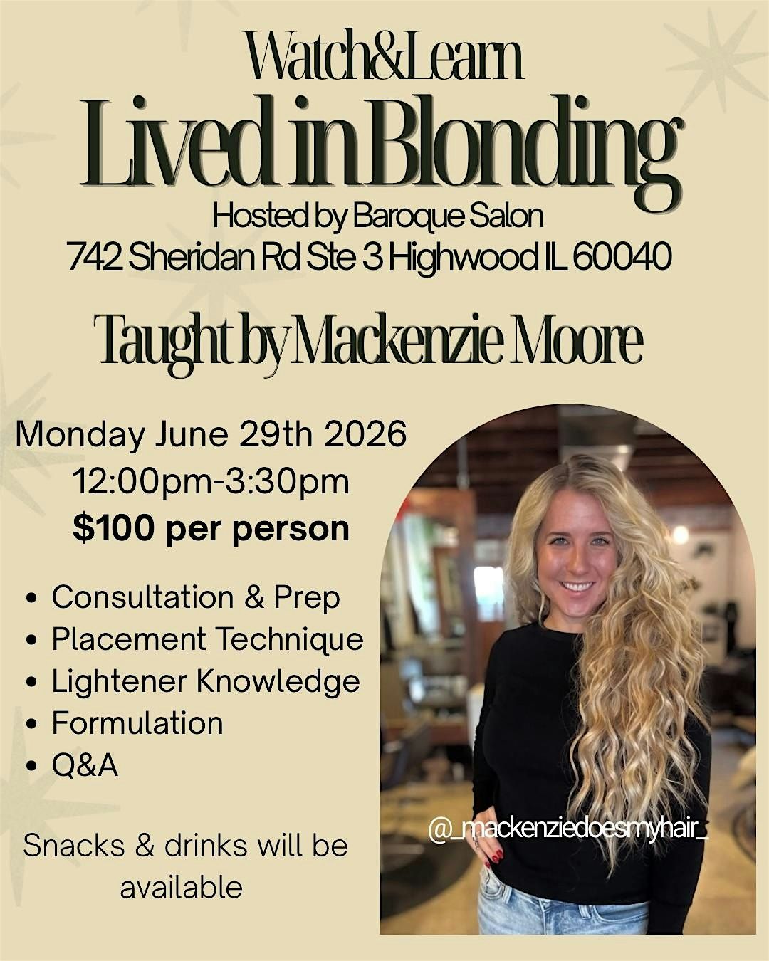 With 12 years experience, Mackenzie Moore will be doing an in-person event where she dives into the latest lived in blonding techniques that showcase low effort and maximum impact. Perfect for stylists wanting to up their game or hair enthusiasts eager to learn.