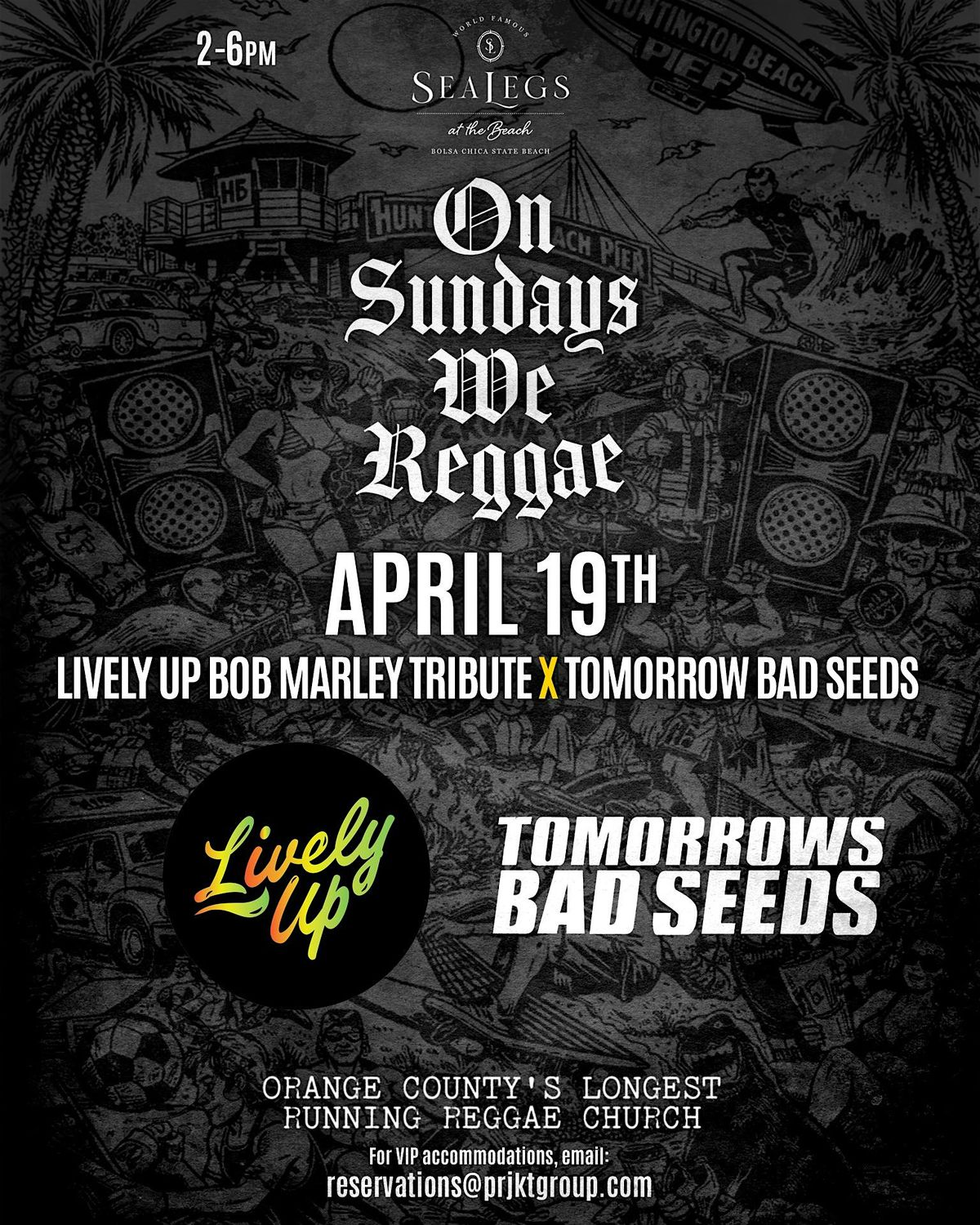 Lively Up Bob Marley Tribute X Tomorrow Bad Seeds on April 19th at 2pm. All ages welcome. For VIP email [email protected]