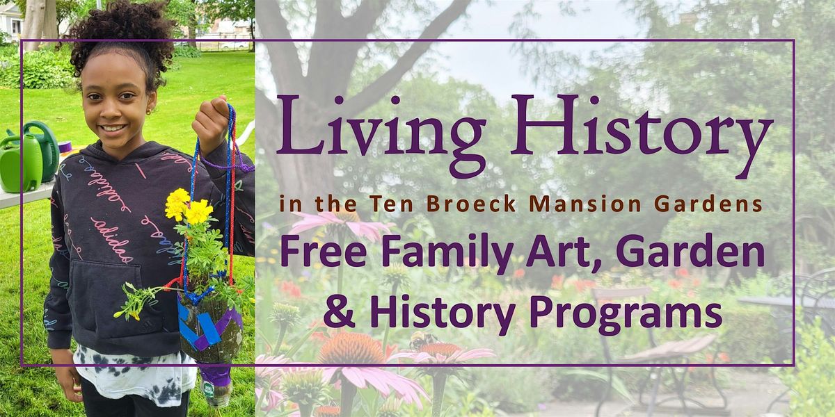 Join us for the Ten Broeck Mansion's free summer family programs. Enjoy our four acres of gardens and grounds with free hands-on activities, all supplies included. Programs held outdoors (under tent) rain or shine - please dress accordingly. Our programs have something for all ages to enjoy.