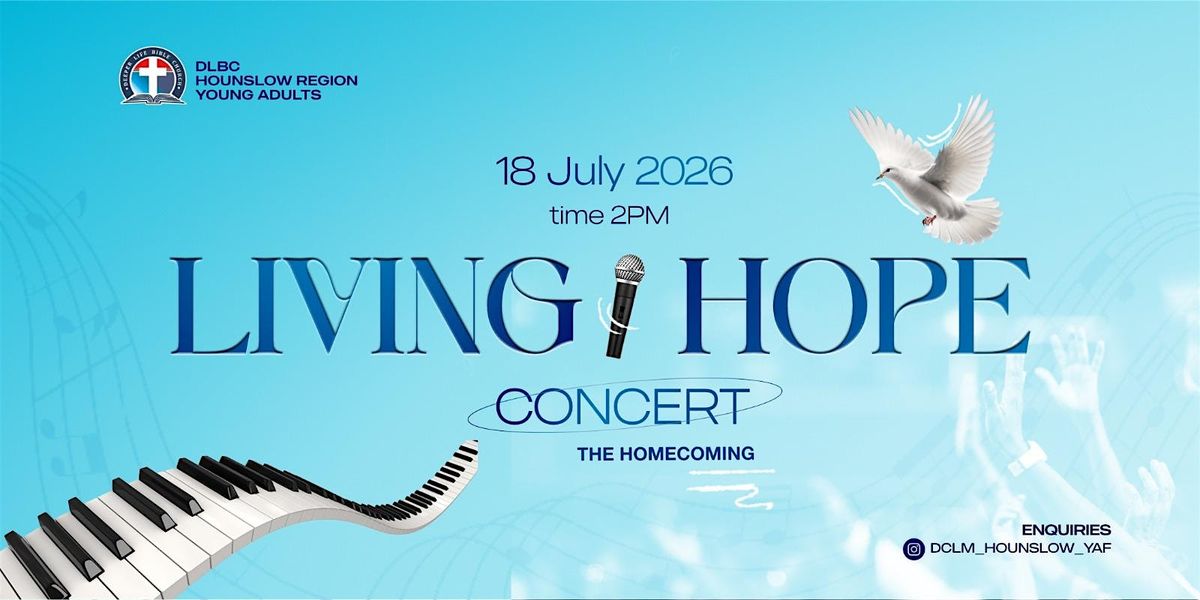 Prepare your hearts for an unforgettable in-person encounter! Join us at The Pavilion on July 18, 2026 by 1:30pm, for the Living Hope Concert - a powerful afternoon dedicated to great music, vibrant community, and the Holy Spirit.