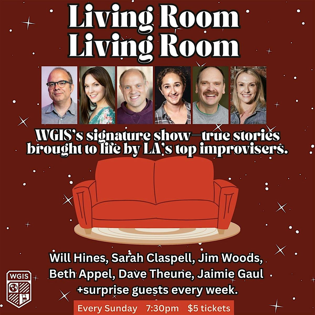 Every Sunday at 7:30 PM | 🎟️ Just $5- https://wgis.crowdwork.com/shows/living-room-living-room