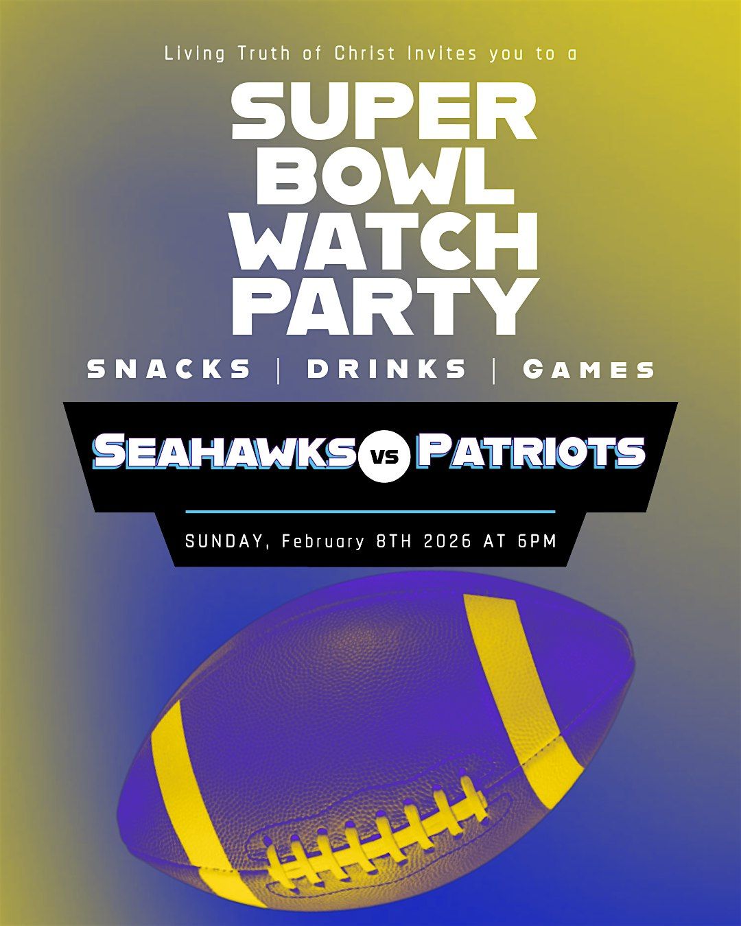 Join us for a fun-filled evening at Living Truth Of Christ Church as we watch the Super Bowl - a night of community and celebration!