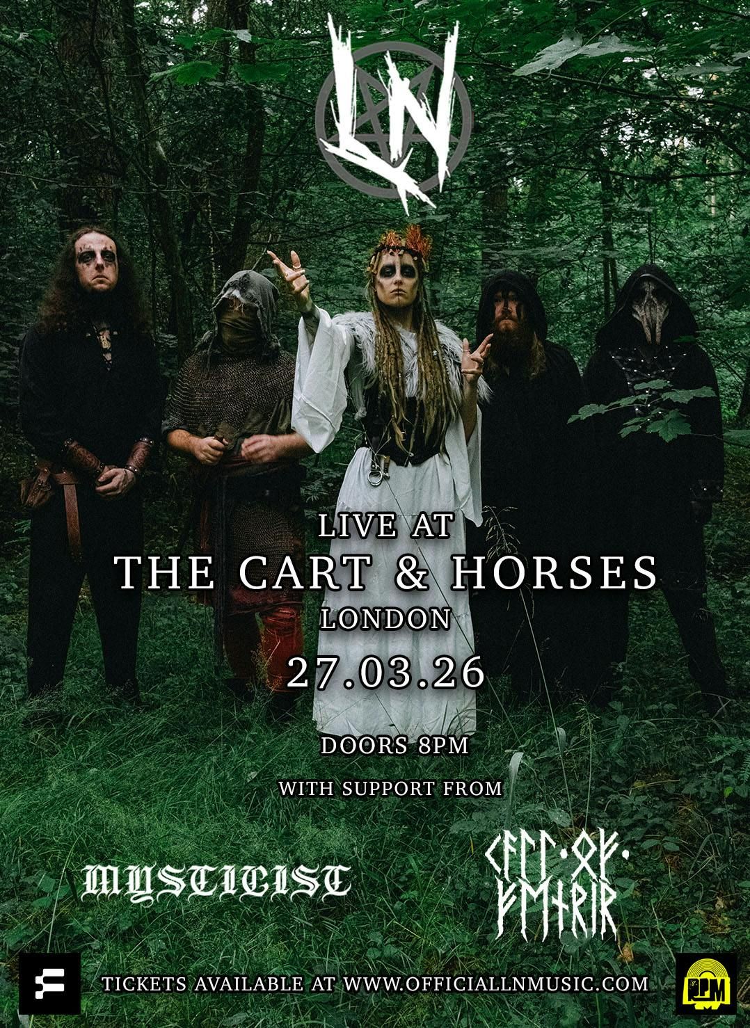 Hailing from Northern shores, Pagan/Viking metal powerhouse that is LN is performing their spellbinding debut ritual at The Cart & Horses on 27.03.26. They are proudly supported by their Folk friends Call of Fenrir and Southern brothers Mysticist.