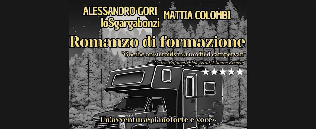 Alessandro Gori, il "più grande scrittore comico italiano" secondo Internazionale, ci invita a seguirlo in uno stralunato viaggio alla scoperta di sé stessi, sulle ruote di un camper sgangherato. A bordo con lui il pianista genovese Mattia Colombi, che suonerà dal vivo suite musicali composte ad hoc per accompagnare il pubblico in un inedito spettacolo di stampo teatrale: "Romanzo di formazione".