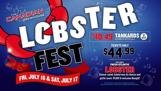 Tickets include fresh Atlantic lobster, Caesar salad, baked mac & cheese and garlic toast. PLUS! A welcome Dangle!
