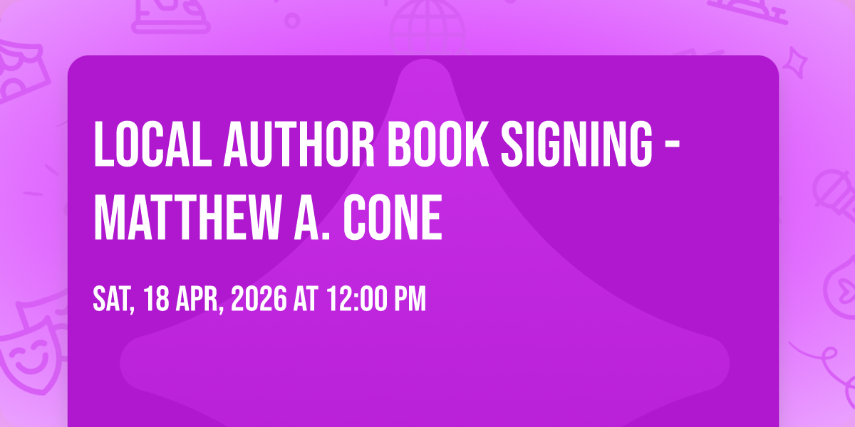 The Rapid City author, Matthew A. Cone, who wrote the romantic trio of books, Illuminations of Love, will be in the store to discuss his writings and sign books. RSVP: https://www.monarchbooksandboutique.com/event-details/local-author-book-signing-matthew-a-cone