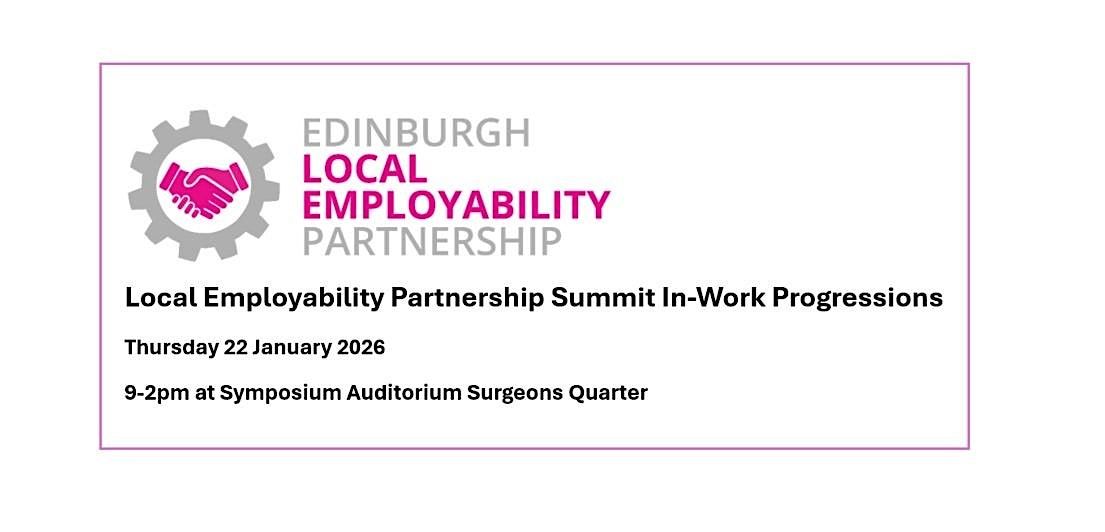 You are invited to attend the upcoming Edinburgh Local Employability Partnership Summit on Thursday 22 January 2026 at the Symposium Auditorium at Surgeons Quarter, 10 Hill Place, Edinburgh EH8 9DS. This is the third Employability Summit where we will focus on the challenges around in-work progressions and attracting and retaining employees.