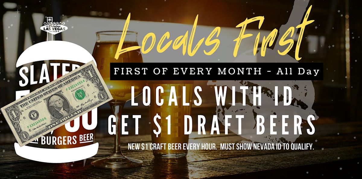 😄😄FIRST DAY OF EVERY MONTH IS DOLLAR BEER DAY!! We love our local fans. Everyone with NV ID (and active service members based in Nevada) gets $1 craft beers all day.