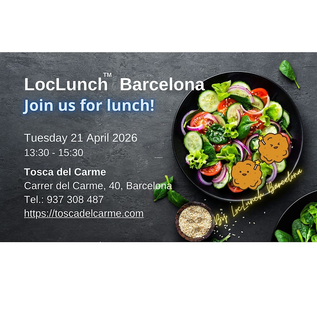 The LocLunch Barcelona ambassadors Yuka Nakasone, Lisa McCarthy, Daniel Pesudo and Andrew Schwartz would love to see you!